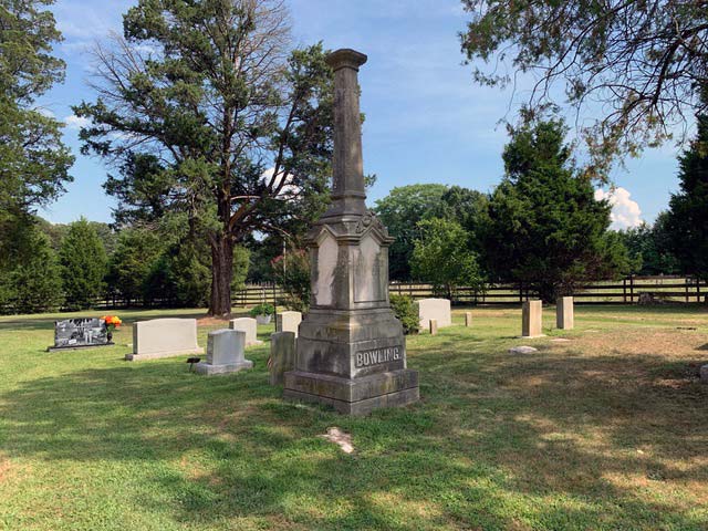 A history of this little country church would not be complete without an explanation about its tiny cemetery. According to family tradition, only the immediate members of Colonel Bowling’s family were to be buried there in the area to the right of the church, as one enters.