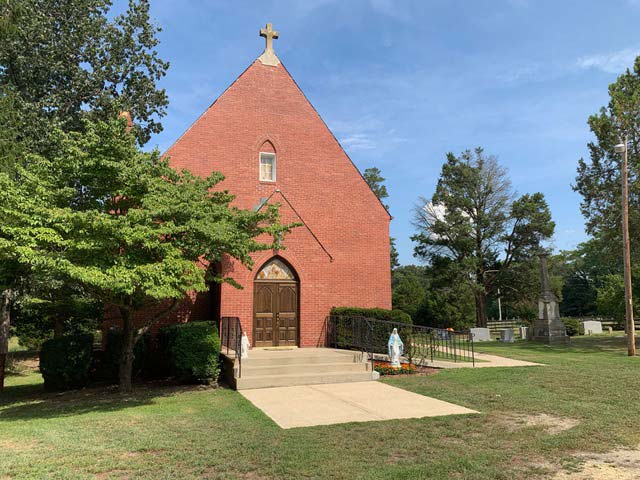 It is very fitting that Helen Bowling Mercer, Fannie Bowling Forbes, Rosalie Eugenia Hall Forbes, and Jane Hayden be buried near this church because for many years they cleaned it, took care of the altar linens and vestments, and housed the itinerant priests who served the parish. There was no rectory built for the church because it has remained a mission of other churches throughout the years. When Masses were to be held, the priests often spent the weekend at “Villa de Sales”, the beautiful Forbes home on the land adjoining the church property, or at “Selma”, the Mercer home.