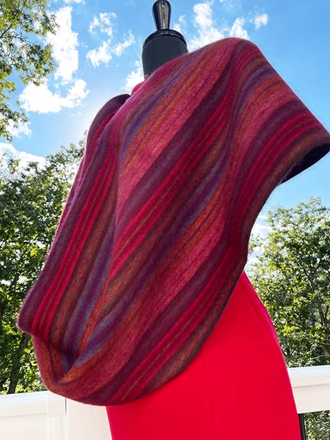 Our Alpaca Infinity Scarves are made from a proprietary blend of 85% alpaca and 15% bamboo (also known as polyimide and rayon from Bamboo and some specialized types of acrylic). This creates a luxuriously soft scarf with additional strength, durability, and memory—so it can be more easily washed and helps to maintain their appearance over time. Bamboo fiber is also super-soft and hypoallergenic—just like alpaca fiber. This is MY CHOICE to create a better product that withstands use and is easier to launder.
