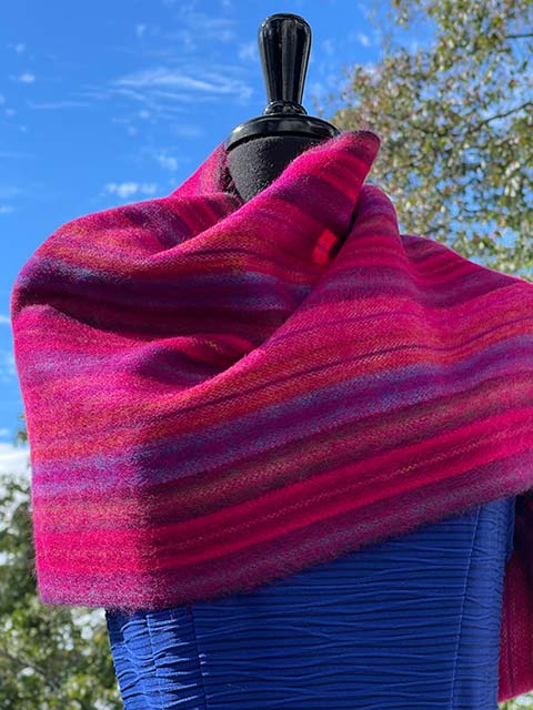 Our alpaca scarves can be washed in your washing machine’s most gentle cycle with cold water and cold rinse using a conditioning human hair shampoo in place of soap. Scarves can be placed in a dryer under very low heat or no heat. Though heat will not ruin the scarf, it can cause shrinkage and is not recommended. We also recommend the use of several dryer sheets when drying your alpaca scarf. more