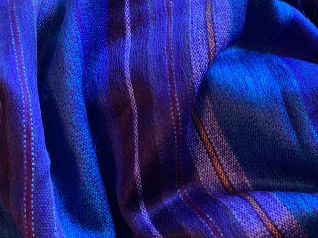 Reversible alpaca blanket featuring a striped pattern in a variety of colors. Approx. size: 88″ x 64″