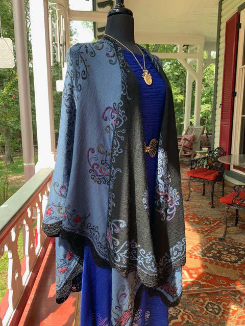 Women’s Embroidered Alpaca Cape – Blue/Black